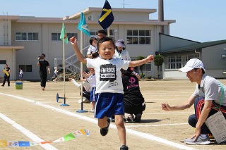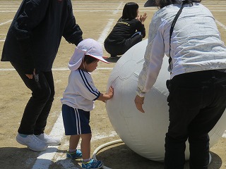 かけっこ、ダンス、大玉転がし、五輪音頭の4つの種目に参加し