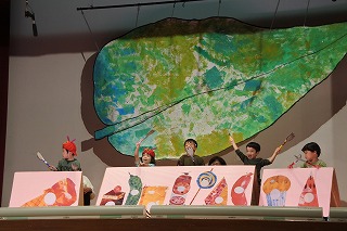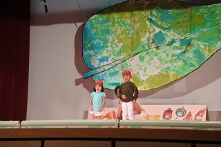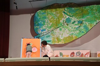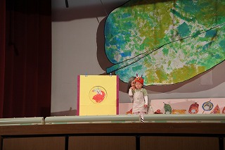 「はらぺこあおむし」の劇を行いました。大勢のお客さんが見守る中、緊張しなが