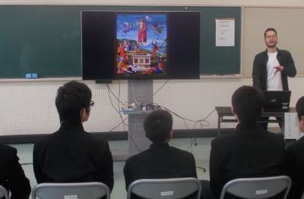 ブラジルの多民族文化、アマゾンの動植物(透明なカエル、アナコンダ)、食文化(ドロドロスープ)、リオのカーニバル、学校生活(給食)、ブラジルのことばと手話についてなどたくさんのことをお話しいただきました。生徒は「おいしい食べ物がたくさんあって、全部食べたいと思いました。」 「ブラジルが行きたい国の№1になりました。」などと興味津々でお話を聞いていました。