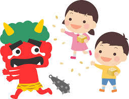 〈鬼は外〉    〈黄鬼をやっつけた〉  〈豆を投げたよ〉