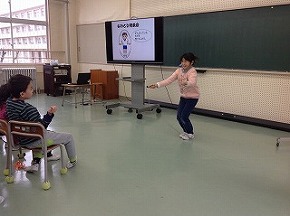 2月6日水曜日に小学部集会がありました。小学部では1月17日から2月15日まで15分間の長休みに縄跳びタイムがあります。縄跳びのいろいろな技に挑戦して、その期間にできるようになった技を2月6日の小学部集会で発表しました。
