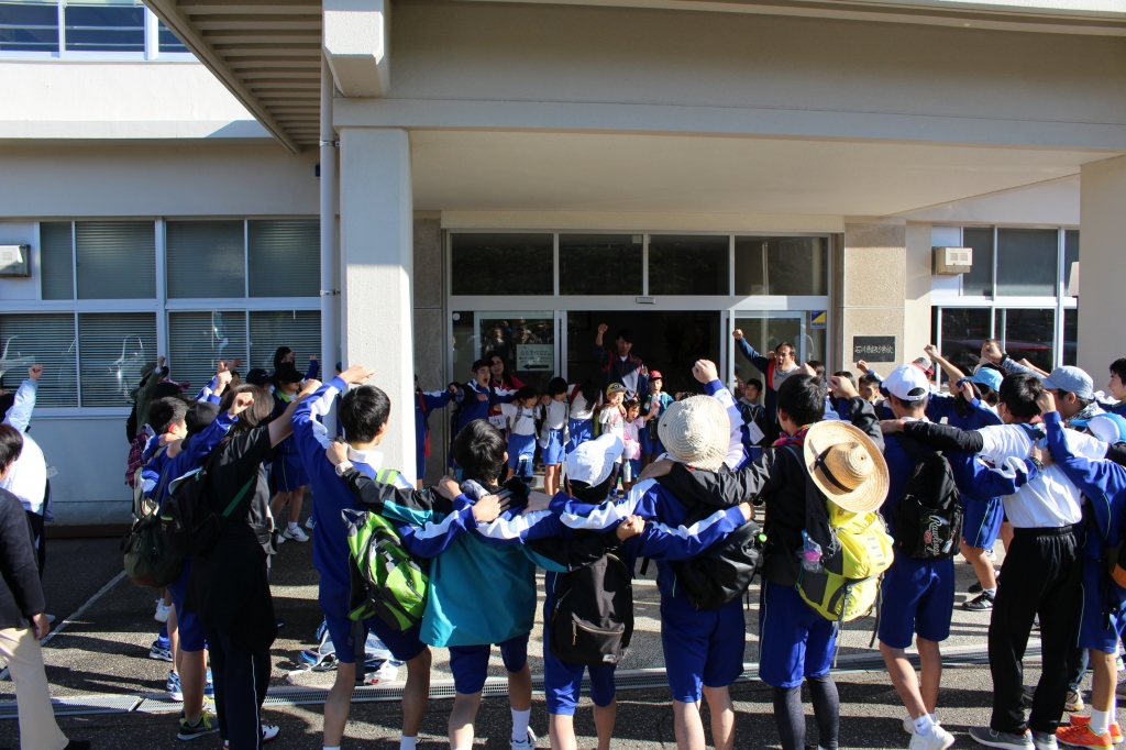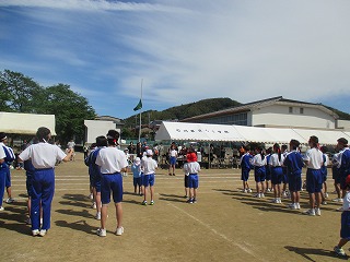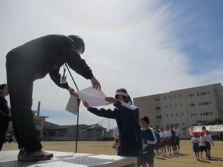 空には、4本の飛行機雲太陽のまわりに虹が現れ、無事、創立110周年大運動会を終えることができました。