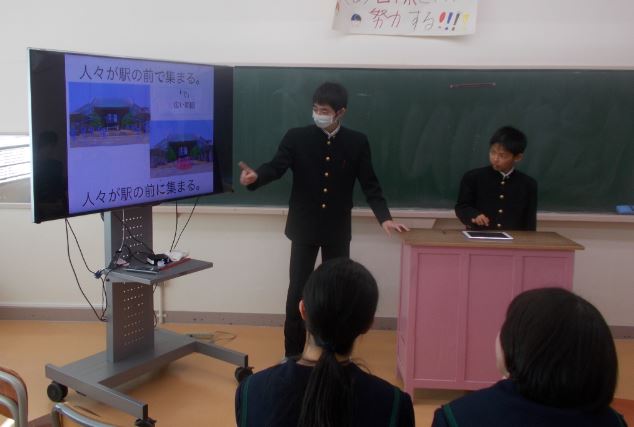 ブラジルの多民族文化、アマゾンの動植物(透明なカエル、アナコンダ)、食文化(ドロドロスープ)、リオのカーニバル、学校生活(給食)、ブラジルのことばと手話についてなどたくさんのことをお話しいただきました。生徒は「おいしい食べ物がたくさんあって、全部食べたいと思いました。」 「ブラジルが行きたい国の№1になりました。」などと興味津々でお話を聞いていました。