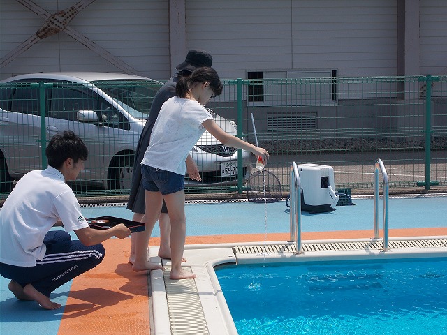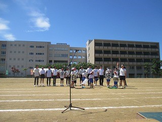 6月25日(月)のプール開きでは、お神酒、お塩でプール安全を祈願したあと、中学部、中田さん、梅野君、潟見君、高等部 山本凪紗さん、中川君が初泳ぎをしてくれました。創立110周年記念大運動会