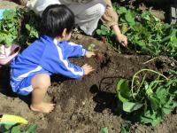 2歳児さんは、親子でサツマイモを掘ったり、動物園に行ったりしました。サツマイモ掘りでは、お顔ぐらいの大きなおいも、ボールのように丸いおいも等、いろんなおいもがとれました。動物園では、お天気にも恵まれて、動物たちの生き生きした姿を見ることができました。サルやトラが子どもたちのすぐ近くまで来てくれて、見つめ合う瞬間もありました。とても楽しい体験でした。