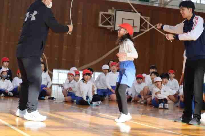 冬の体力づくりとして、毎年恒例のなわとび記録会が行われました。体育の時間や休み時間を使ってたくさん練習してきた成果が出たようです。ペア学年の子たちの数を数えたり、応援したりしながら、ほのぼのとした会になりました。技紹介やリレー対決、ダブルダッチ披露など各学年でいろいろな工夫があり、大いに盛り上がっていました。