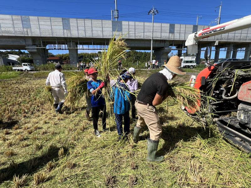 今年も地域の方を田んぼをお借りして稲刈り体験を行うことができました。