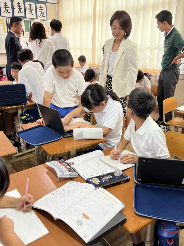 9月19日、国会議員の方など7名による学校視察があり、6年生の国語、4年生の算数の授業を見ていただきました。
