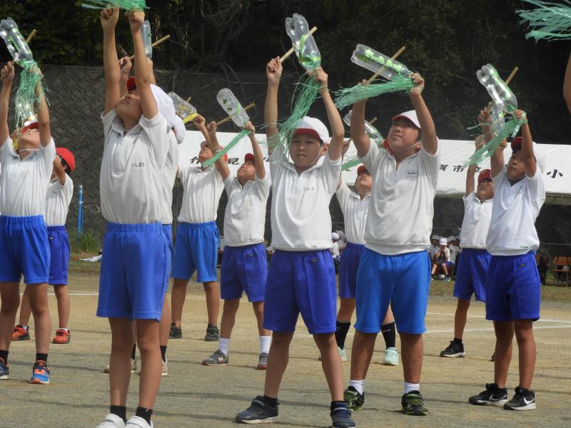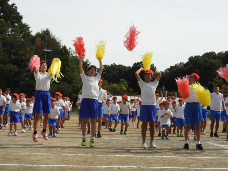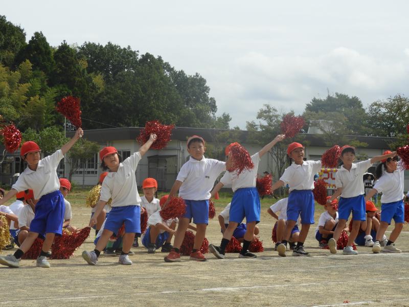 1・2年生の個人走や3・4年、5・6年の全員リレーでは自分の力を精いっぱい出し、最後まで駆け抜ける姿が見られました。団演では、低・中・高それぞれの良さがあり、音楽に合わせて全身を使って表現し、見ている人を魅了することができました。この団演は一番力を入れてきた種目です。大きな拍手を受け、子どもたちも充分に達成感を味わうことができたようです。全校児童が、心を一つにした応援合戦も盛り上がりました。応援団を中心に下級生に教えながらみんなで作り上げた素敵な応援でした。