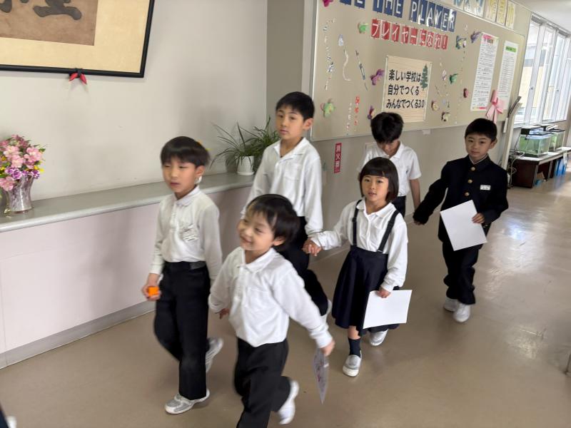 学校探検!!2年生が、1年生を案内しました。優しく案内している2年生を見てとても頼もしく感じました。もう、すっかり上級生です。「ここは、〇〇室です。~するところです。」自分たちで考え、ちゃんと紹介していました。