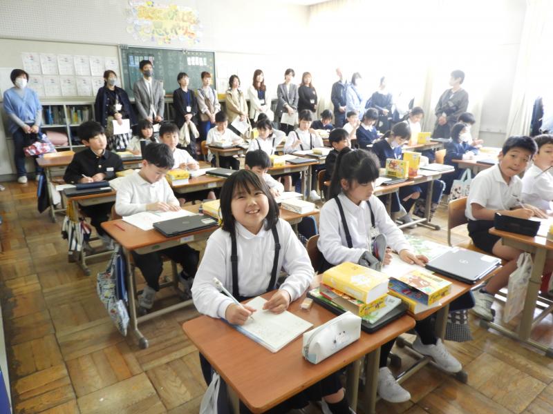 作見小学校にも、たくさんの方が「授業ツアー」にいらっしゃいました。子どもたちは緊張もせず、いつものように、自分の学びを進めていました。