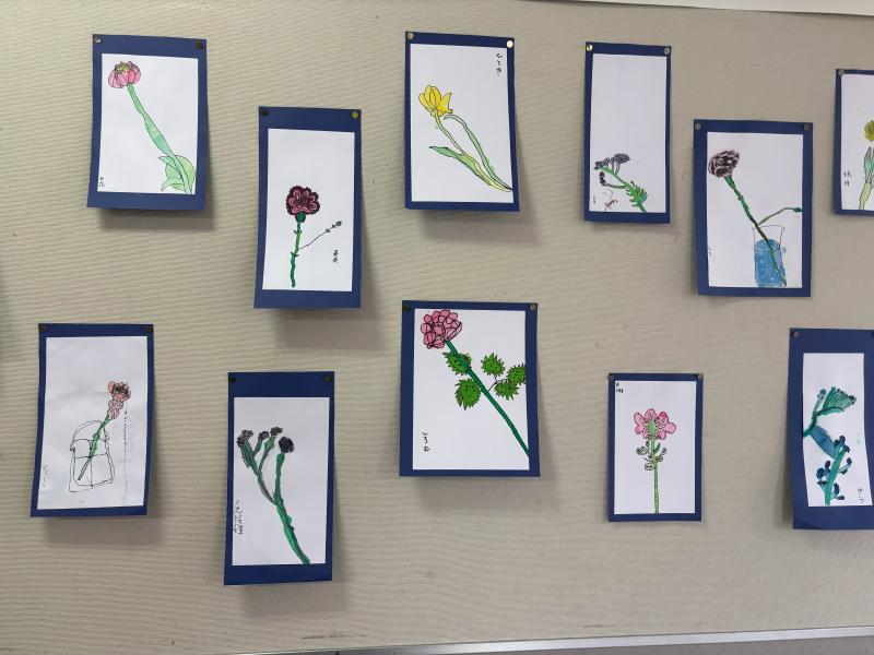 子どもたちの作品をはると、ぱっと教室が明るくなります。