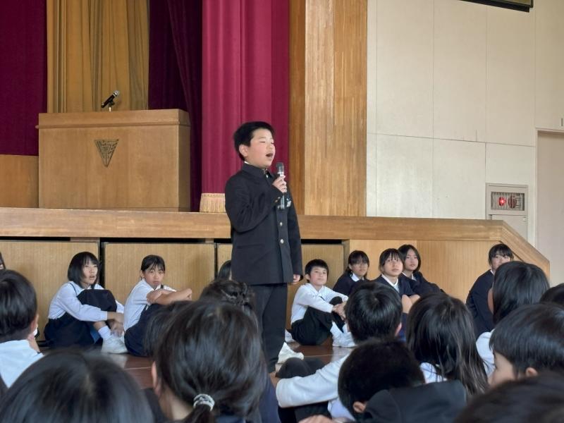 まずは、音楽会の歌の披露から始まりました。素敵な歌詞が心に響きました。10歳になる4年生にぴったりの歌でした。美しいハーモニーが体育館に広がりました。保護者の方々もじ~んときたのではないでしょうか?素敵な歌声をありがとう。