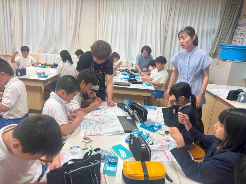 作見小学校が避難場所になる可能性もあります。新聞紙の夜スリッパづくりの体験を通して、みんなにできることの一つとして、あるものを工夫すること、力を合わせることを心に刻みました。