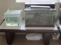 本校の児童玄関(南玄関)に通じる廊下に4つの水槽を置いてあります。