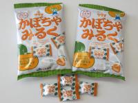 今日,JA加賀から寄贈された加賀市特産のカボチャのペーストで作ったあめ『かぼちゃみるく』を,子ども達一人一人に1袋ずつ配りました。