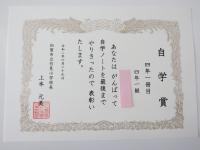 自学ノートが1冊終了すると,賞が出ます。