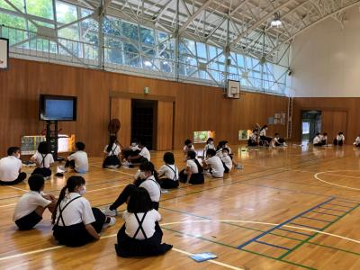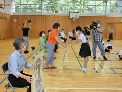 昨日,5月に全校児童に手作りマスクを寄贈してくださった団体の代表の方をお招きして,「感謝の気持ちを伝える会」を開きました。
