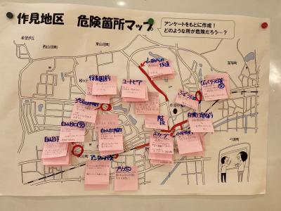 その後,保護者の方々や卒業生の協力を得て,地域の危険な場所の情報をまとめました。