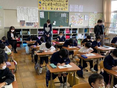 2年生は,帰りの会が終わって教室から玄関へ行く時,よく校長室をのぞいてくれます。元気に「校長先生,さようなら~。」いつものことですが,とても,うれしくなります。