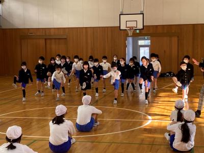 5年生も2年生の時に習った「あんたがた どこさ」を思い出しながら,『手毬』を披露。「覚えているかなあ?」と最初は不安そうな子もいましたが,さすがです。見事な「あんたがた どこさ」の手毬を披露してくれました。