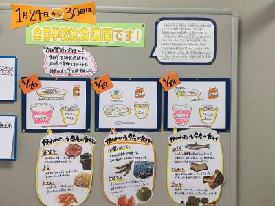 加賀市の学校では,この『全国学校給食週間』中に,石川県の産物を取り入れた給食献立が3日間実施されます。本校では,明日からの3日間。楽しみです。