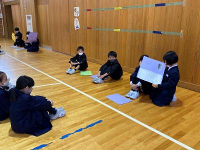 2年生は,国語科で勉強した『知ってびっくり!あなのふしぎ』をポスターセッション形式で発表しました。3年生は,各教科で勉強したことを発表しました。国語科の俳句,音楽のリコーダーの指使い,社会科の地図記号,算数の重さ等をクイズ形式を取り入れて,2年生が楽しめるように発表しました。
