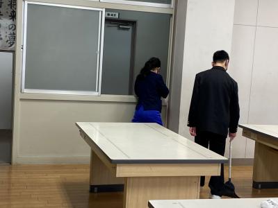 部屋の隅々,窓やドアの桟まできれいにしてくれました。掃除が終わって教室へ帰る時には,新しかった雑巾が真っ黒になっていました。