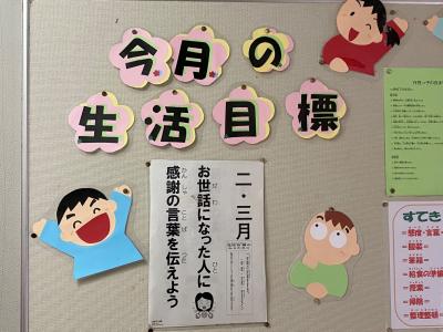 2月,3月の生活目標は「お世話になった人に感謝の言葉をつたえよう」です。