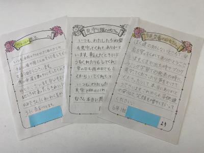 日頃から地域で見守ってくださっている見守り隊の方や警察の方,図書ボランティアの方,校内では,普段顔を合わせてお話をする機会は少ないけれど子ども達の学校生活を支えてくれている校務員さんや給食調理員さんへ,そして,いつもお世話になっている支援員さんへ感謝の手紙を書きました。