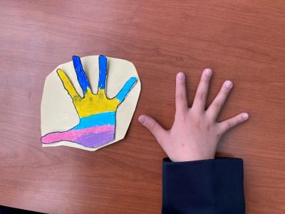 年度当初に作って,学級目標に貼ってあった手形。手は大きくなったかな?