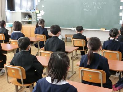 春休み中にも関わらず,子ども達は登校してくれました。5年生と卒業生は体育館で,1~4年生はGoogle Meetを使って各教室で離任式に出席してくれました。