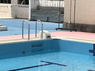 高学年プールの様子です。近くの木の葉っぱがたくさん入っていたので、それを取るのが大変でした。