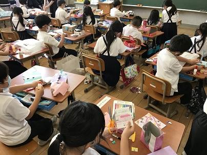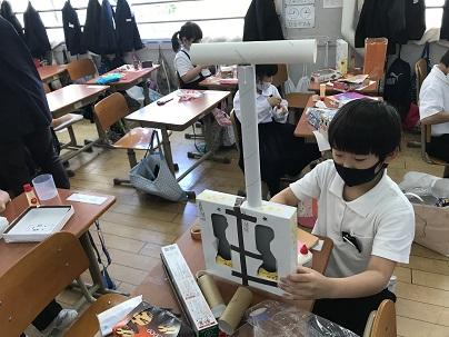 1年生が図工で「うきうきボックス」の勉強をしていました。