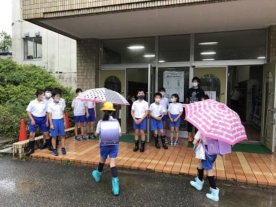 今週から、朝の挨拶ボランティア活動をクラスごとに始めました。今日は南玄関に2年1組が、西玄関に4年1組が立ち、児童会役員と共に登校してくる友達に爽やかに挨拶してくれました。いつもと違った光景に、登校してくる子どもたちも元気に挨拶を交わすことができました。今日は雨が降って朝からうっとうしい日ですが、気持ちのよい挨拶から始まり、いい1日になりそうです。