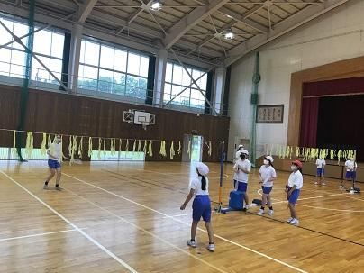 バドミントンクラブはみんなで試合を楽しんでいました。1位の子は担当の先生と勝負するそうです。