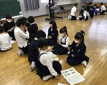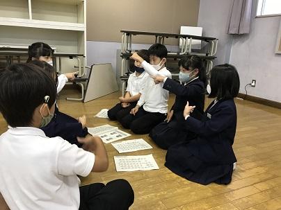 5限目に、3年生が総合の時間に勉強してきた手話を2年生に教える場面がありました。手話の内容は「あいさつ」「名前」「気持ち」などの伝え方でした。3年生はこの時間のために、手話や説明の仕方を練習してきました。グループに分かれて、3年生は一生懸命に手話を教え、2年生はしっかりと聞き、教わった手話を楽しそうに表現していました。最後は、2・3年生がお互いに学習の振り返りを行っていました。今日、学校で勉強した手話をぜひ家の人にも見せてあげてほしいと思います。