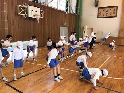 いしかわっ子体力向上アクションプランではこれまで4年生が中心となり、外部の先生の指導を受けてきました。今日はこれまで習ってきた内容ややり方を4年生が3年生に教えてくれました。3年生もいろんな体の動きを教えてもらって、汗をかいて楽しそうでした。これまでの練習の積み重ねもあって、4年生の教え方が上手で、3年生は一生懸命にまねして体を動いていました。こんなふうに交流して学び合える3・4年生が今日はとても頼もしかったです。