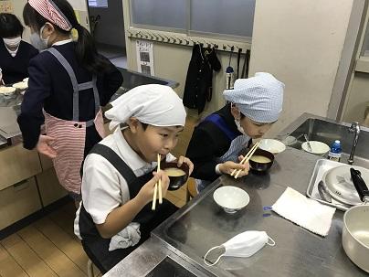 いよいよ試食、あっ、僕たちの作ったみそ汁おいしい!