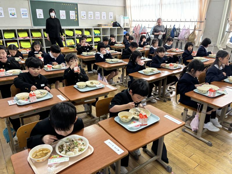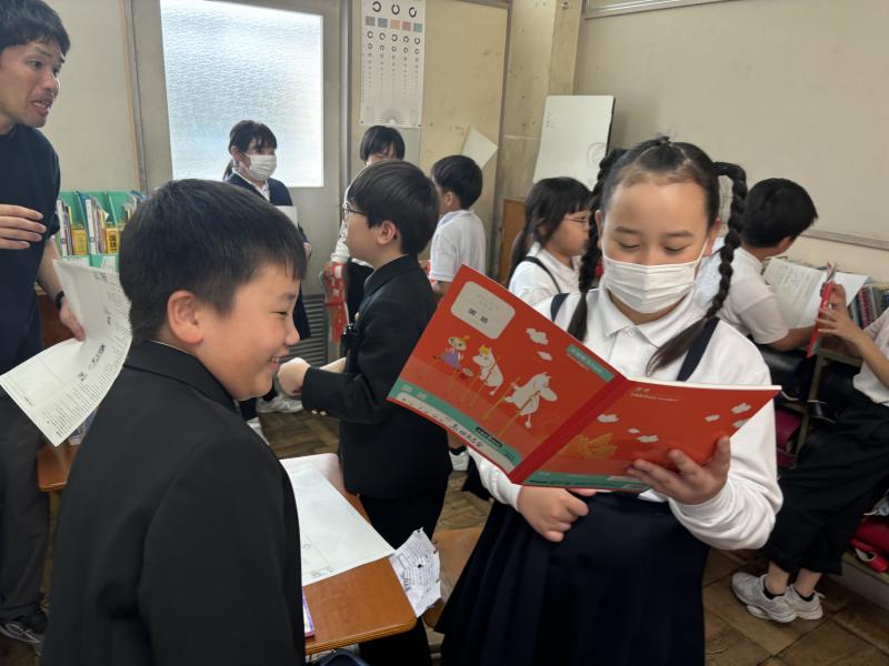 朝の読み聞かせ、ランドセルの片付けの手伝いなど、上級生もたくさん応援してくれています。温かい雰囲気でスタートした2024年です。