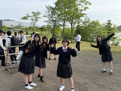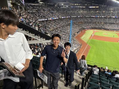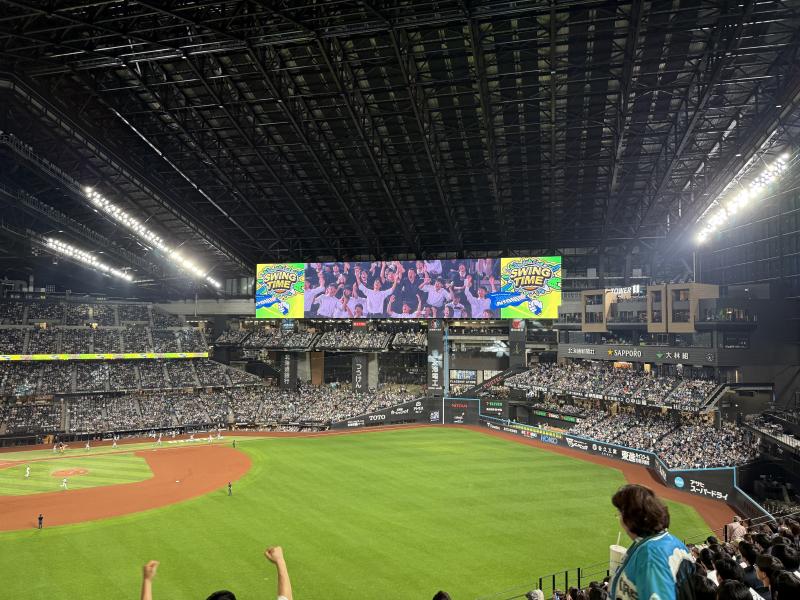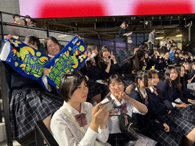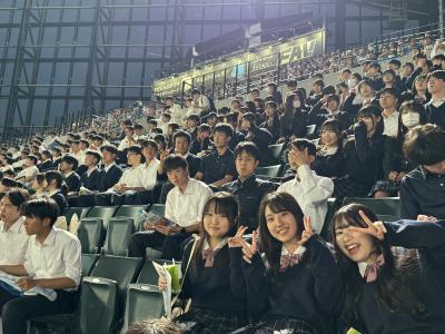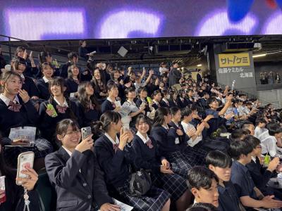 昨晩はエスコンフィールドで北海道日本ハムファイターズ 対 東京ヤクルトスワローズの試合を5回まで観戦しました。試合は序盤からホームランが飛び出すなど点の取り合いとなり、大いに盛り上がりました。球場の演出で本校生徒がたびたびスクリーンに映し出されるなどしたこともあり、生徒は楽しい時間を過ごしていました。