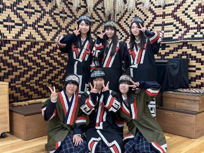 ウポポイに来ました。国立アイヌ民族博物館を見た後、体験学習館でアイヌの民族衣装を着たり、遊びを体験したりして楽しみました。