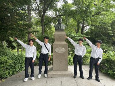 人文科学コース1日目は、東京国立博物館とJICA地球広場を訪問しました。東京国立博物館は、歴史の資料集などで目にする貴重な文化財を目の前に、先人の営みに思いを馳せる貴重なひとときとなりました。その後、各自で昼食をとり、JICA地球広場を訪問しました。体験コーナーで様々な国の慣習などについて学んだ後、バングラデシュに青年海外協力隊で派遣された方のお話しを伺いました。バングラデシュにはファストファッションの工場が多く、かつてその劣悪な環境が大災害につながったそうです。我々も無関係ではありません。多くのエピソードは大変興味深く、多文化共生のヒントも多く学びました。