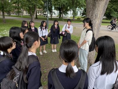 北海道大学では本校出身の大学生に北海道大学での勉強、大学生活について説明を受けました。
