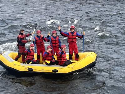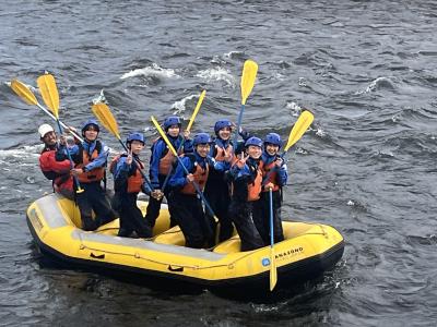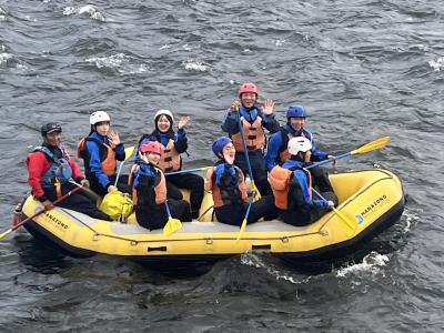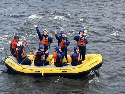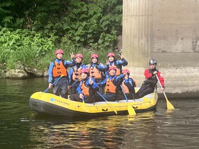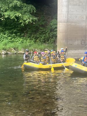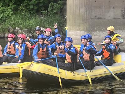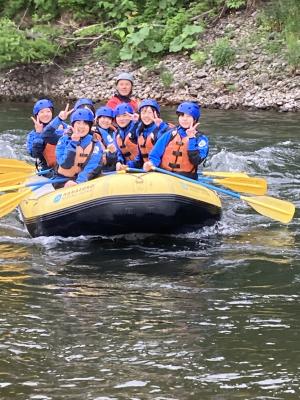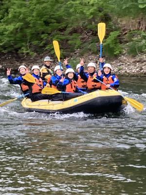インストラクターの皆さんが明るく振る舞ってくれたおかげもあり、生徒みんな笑顔でラフティングを楽しむことができました。お互いに水を掛け合ったり、水の中に飛び込んだり、普段学校ではできない貴重な体験ができました。
