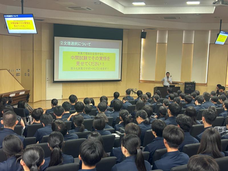 1年生を対象に進路講演会を実施しました。生徒たちは、これから迎える文理選択という重要な時期に向けて、自らの将来を真剣に考える機会となりました。