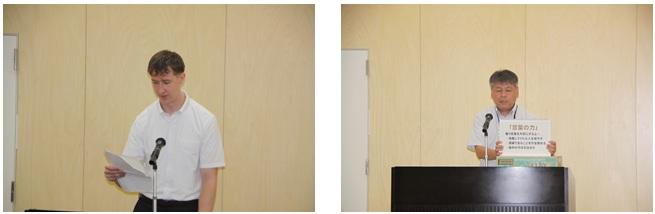 最後に、7月末で本校を離任するALTのアリソン先生の離任式が行われました。「(1年間という短い期間でしたが、)多くの楽しい思い出が出来ました」と別れの挨拶を述べました。アリソン先生の今後の活躍を期待します。