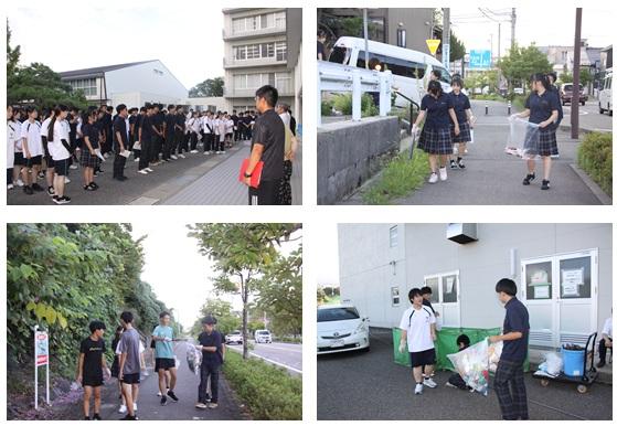 各部活動では近隣地域の割り当てられた区域を周り、たばこの吸い殻や空き缶など、捨てられたゴミの回収を行いました。清掃後、きれいになった景色をみて清々しい気分になったという感想が聞かれました。