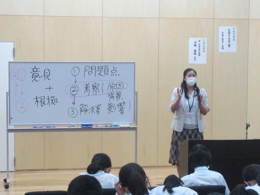 7月17日(金)の放課後、第一学習社より河端理恵先生をお招きして小論文ガイダンスを行いました。3年生の希望者対象のガイダンスでしたが、100名を超える生徒が参加しました。