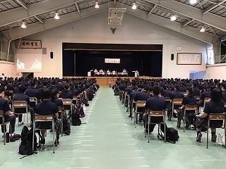 続いて行われた始業式では校長先生から、「校訓『質実剛健』校是『文武両道』を大切にし、3年生は先頭に立って見本となり、2年生は大きく飛躍できるよう充実した日々を送るようにとの講話がありました。その後、保健の大門先生からコロナ禍での学校生活についての話がありました。